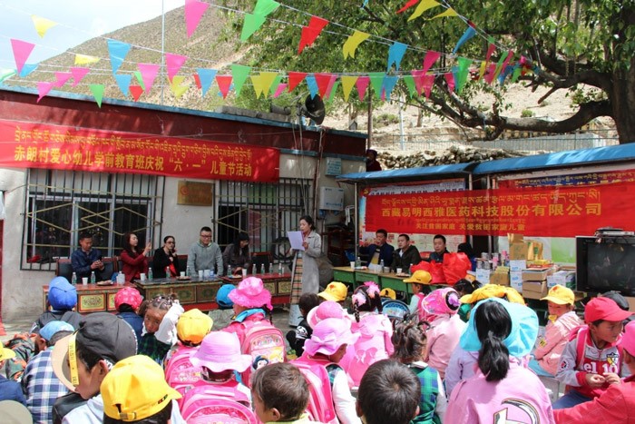——An public benefit activity of donating to pre-education children in Chilang Village, Nimi County by Tibet AIM Pharm Through the introduction of the Lhasa Municipal Science and Technology Bureau, on June 1, Tibet AIM Pharm held a public welfare activity of “Caring for Family and Children in Poverty” in Chilang Village, Karu Township, Nimu County, Tibet on Children's Day.